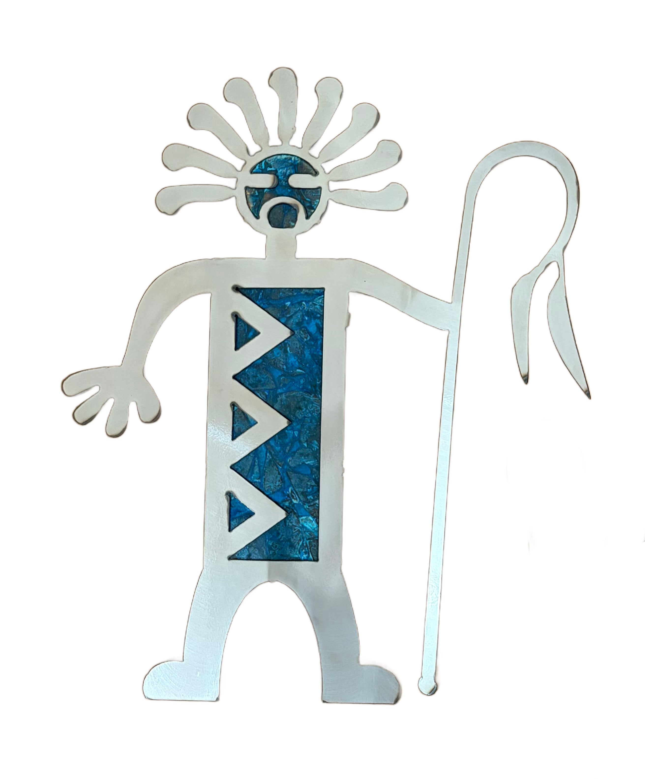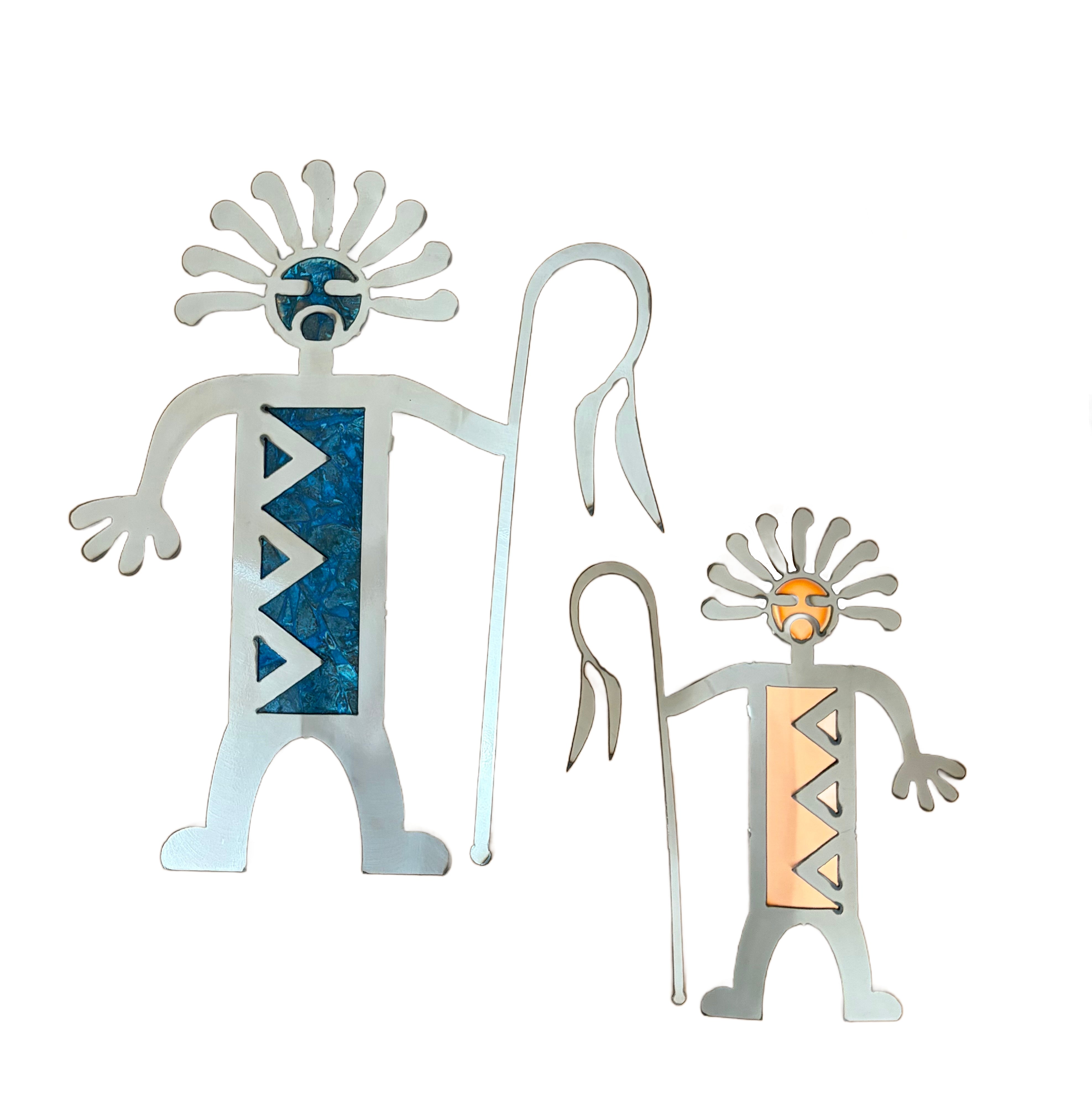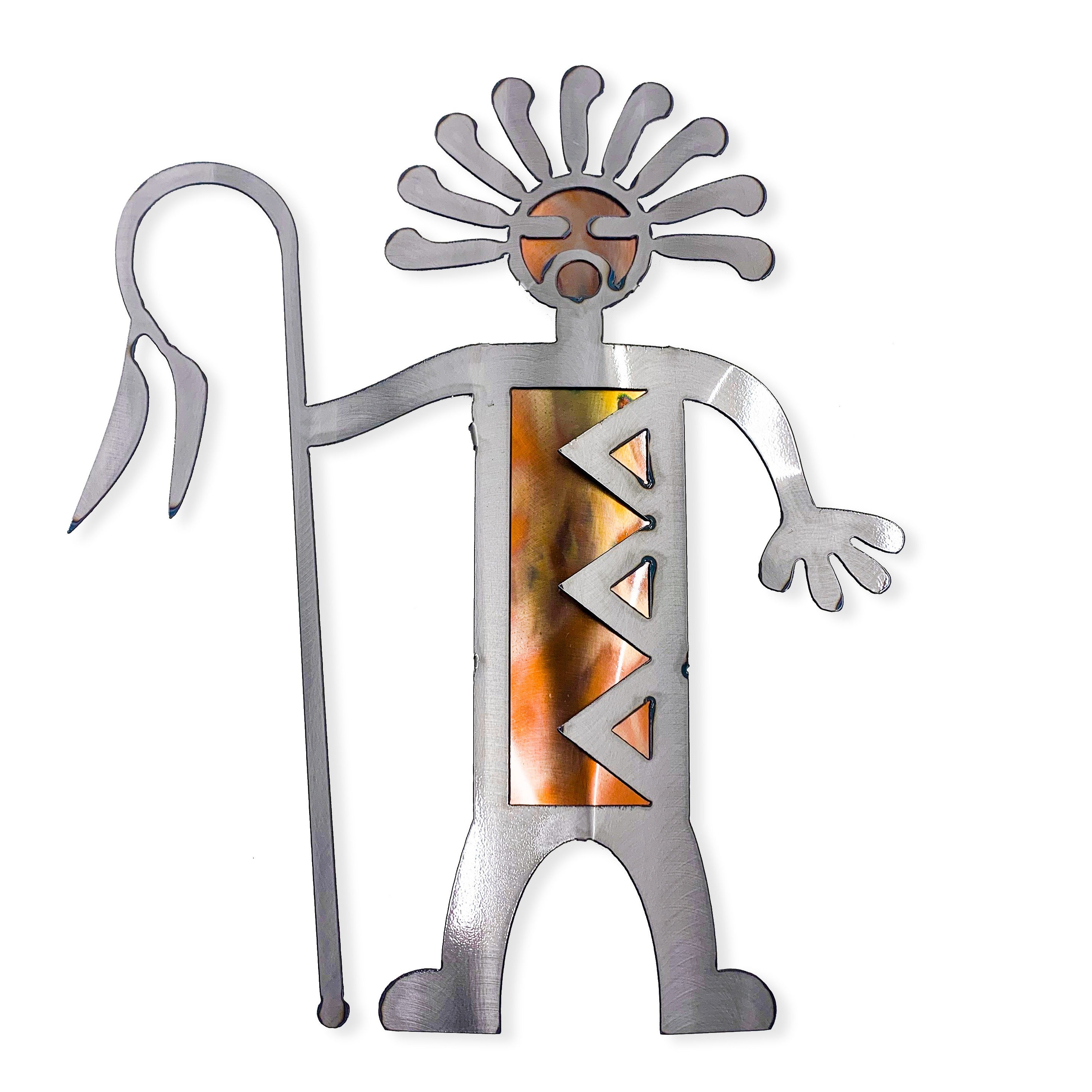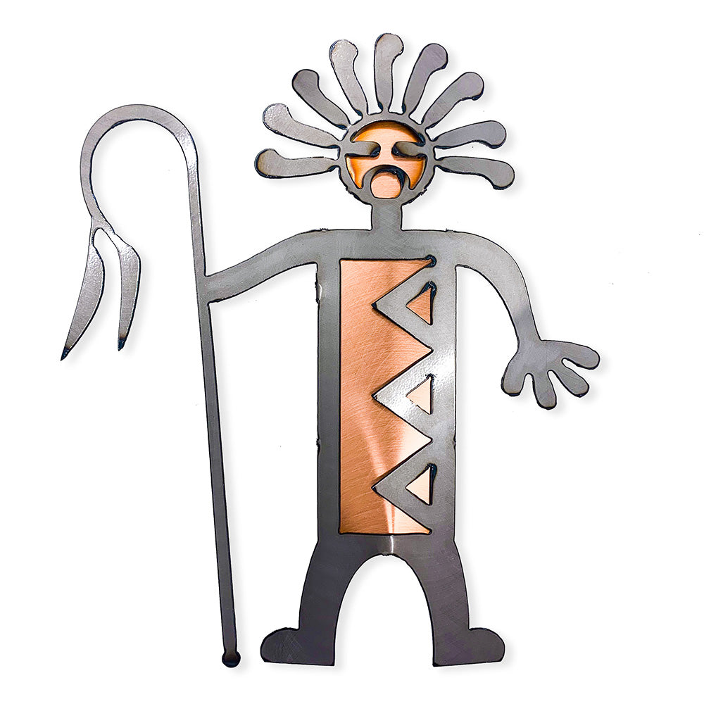 While the true meaning of many petroglyphs are passed down through oral traditions within specific tribes, our interpretation of the "Shepherd" petroglyph resonates protection and caring. Choose from either our raw copper finish, our torched flame finish or our patina blue finish.